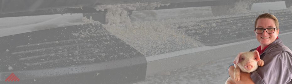 Movement of viruses in cool weather is common, as pathogens can be mechanically transported long distances. In 2002, Dr. Scott Dee led research on the mechanical transmission of PRRSv. This study confirmed that the virus can effectively and efficiently be transported in cool weather on surfaces, including vehicles. This research has since been referred to as “the snowball from hell.” Vehicles pick up debris from road surfaces that can be deposited as live pathogens into new locations (such as a farm’s driveway), particularly when preserved in snow or ice that accumulates during transit.